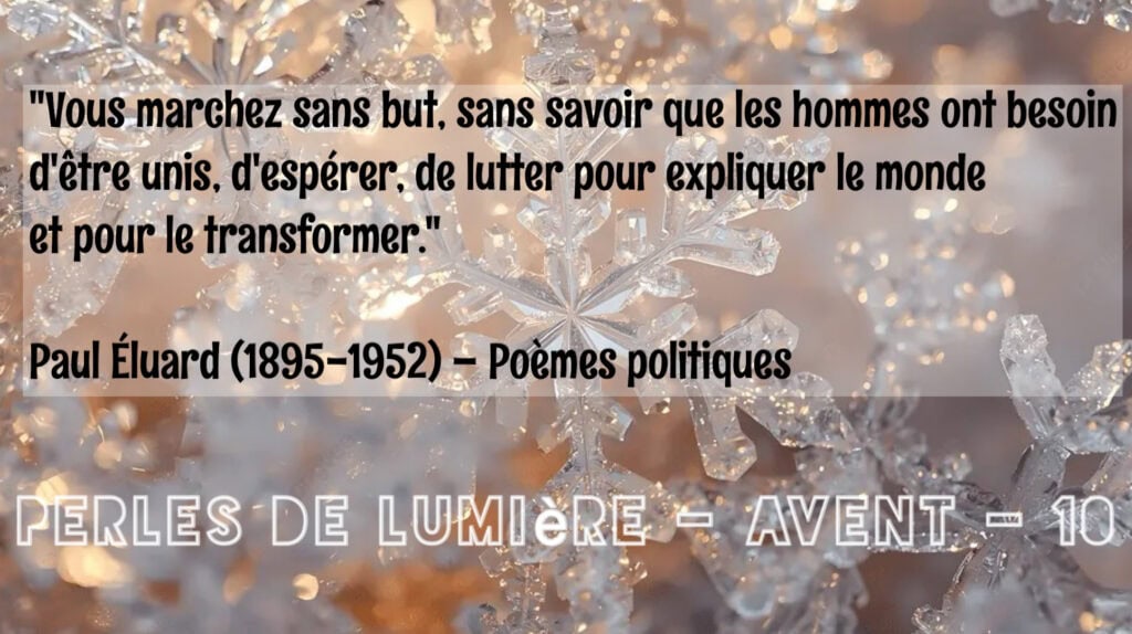 « Vous marchez sans but, sans savoir que les hommes ont besoin d’être unis, d’espérer, de lutter pour expliquer le monde et pour le transformer. »