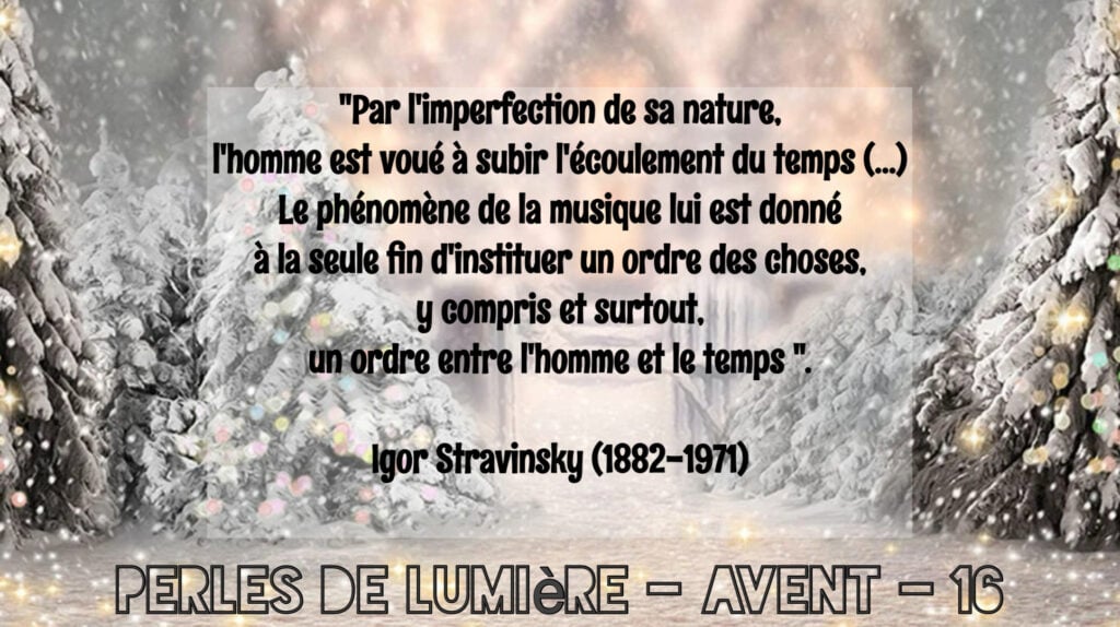 « Par l’imperfection de sa nature, l’homme est voué à subir l’écoulement du temps (…) Le phénomène de la musique lui est donné à la seule fin d’instituer un ordre des choses, y compris et surtout, un ordre entre l’homme et le temps « .