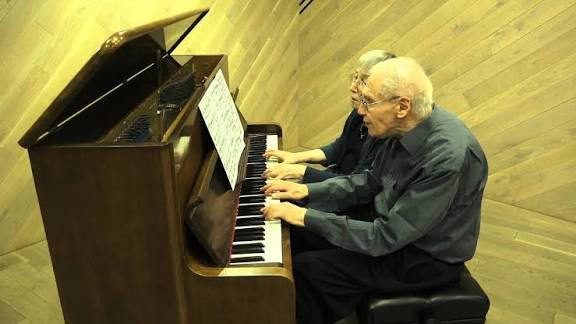 Voici une sonatine de la cantate “Actus tragicus”, BWV 106 de Bach, transcrite pour piano à quatre mains par Kurtàg et interprétée par sa femme Marta et lui-même.